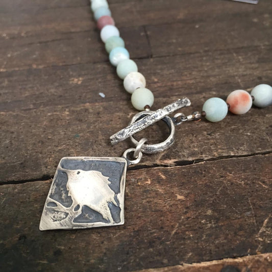 Baby Crow Sterling Silver Necklace with Amazonite Round Beads by iNk Jewelry
